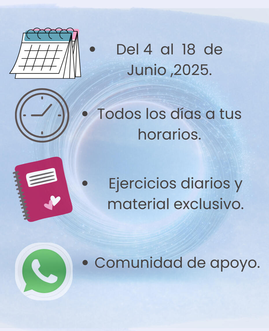 ¡Regálate 15 días para conectar contigo y fortalecer tu autoestima! A través de pequeñas acciones diarias, podrás verte con más amor, confianza y gratitud. Este reto está diseñado para ayudarte a priorizarte, reconocerte y transformar la manera en que te hablas y te ves a ti mismo.